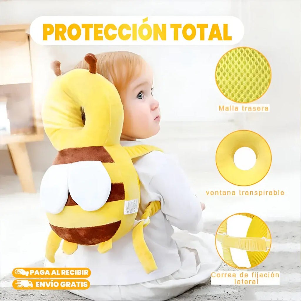 Evita golpes en la cabeza y rodillas cuando tu pequeño da sus primeros pasos. La mochila absorbe impactos y las rodilleras cuidan cada caída.