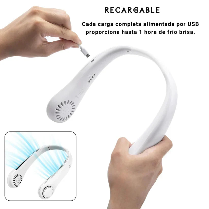 Con nuestro ventilador de cuello, di adiós al calor incómodo, este dispositivo te ofrece refrescante en cualquier momento y lugar